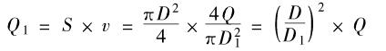 設(shè)實(shí)際流量為 O ,測(cè)量流量為 O1,標(biāo)定時(shí)測(cè)量通道直徑為D,截面積為 S ,實(shí)際測(cè)量通道直徑為 D1,截面積為 S1 ,流速為 "。當(dāng)流量計(jì)測(cè)出流量頻率值后,根據(jù)標(biāo)定圖版可換算為流量,此時(shí)計(jì)算采用的是標(biāo)準(zhǔn)過(guò)流通道內(nèi)徑,瞬時(shí)測(cè)量流量應(yīng)為: