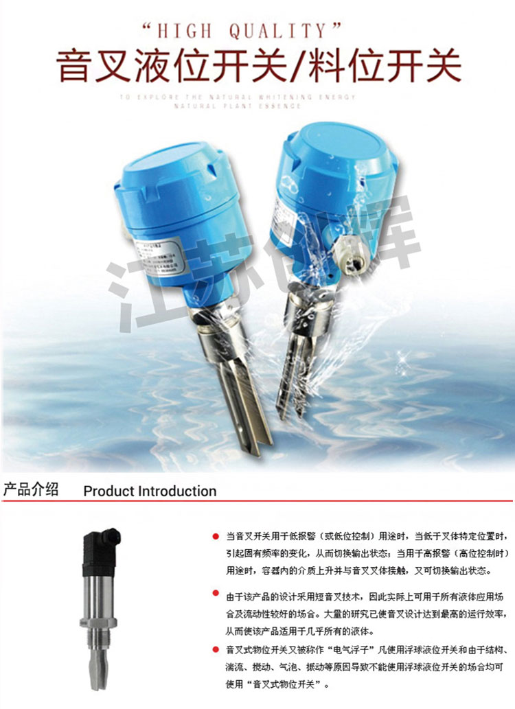 普通的音叉料位開關是通過安裝在音叉基座上的一對壓電晶體使音叉在一定共振頻率下振動。當音叉料位開關的音叉與被測介質相接觸時,音叉的頻率和振幅將改變,音叉料位開關的這些變化由智能電路來進行檢測,處理并將之轉換為一個開關信號。
