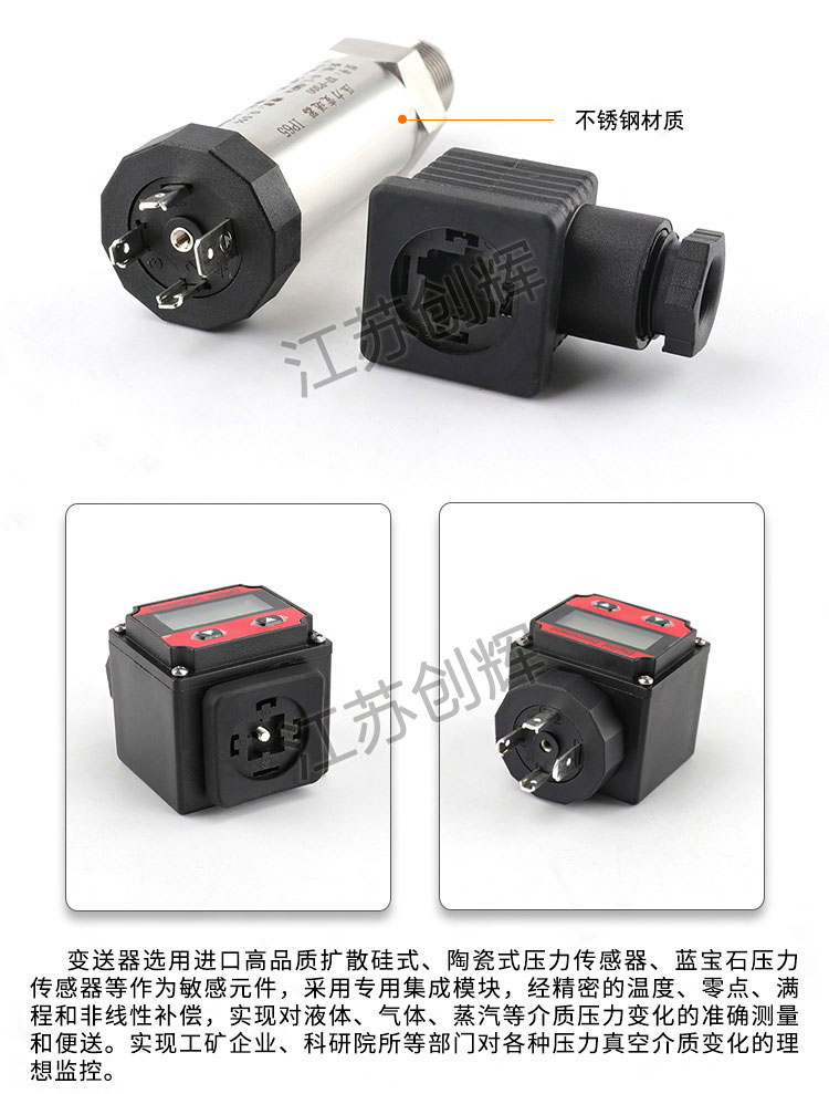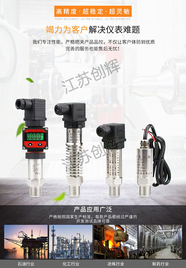 精巧型壓力變送器,采用金屬擴散硅傳感器,金屬的延展性、精度及各方面的綜合指標是很多其他類型傳感器無可比擬的。傳感器選用美國GE集團NOVA公司進口壓力傳感器或者MICROSENSOR公司合資壓力傳感器,產品由高精度傳感器和高集成化電子線路及不銹鋼外殼組成。**應用于空調設備、恒壓供水、自動化控制、空壓機、制冷設備、水處理系統(tǒng)、液壓系統(tǒng)、工程機械、發(fā)酵罐過程檢測等。