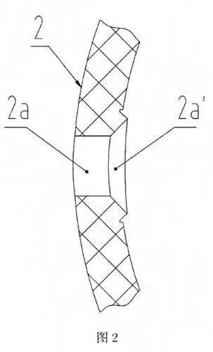 參見圖1~圖3,一種電磁流量計電極的安裝結構,包括金屬外管1、襯里2和電極3,其中,襯里2設置在金屬外管1中,電極3包括電極桿31和位于電極桿31一端的電極圓頭32,電極桿31與電極圓頭32之間設有電極圓錐段33,電極桿31上設有螺紋,電極桿31、電極圓頭32與電極圓錐段33為一體成型。金屬外管1的管壁設有過孔,樹里2設有與金屬外管1上的過孔同心的裝配孔2a,裝配孔2a的內側孔口具有與電極圓錐段33相配合的圓錐形的倒角面2a'。電極桿31穿過襯里的裝配孔2a和金屬外管1的過孔,電極圓頭32與襯里2的內壁之間相接觸形成*密封面,電極圓錐段33與裝配孔的倒角面2a'之間相接觸形成第二密封面,電極桿31的螺紋部安裝鎖緊螺母4從而將電極與金屬外管1相固定。
